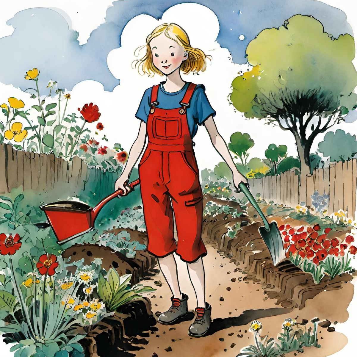 „Dann beginnen wir damit, den Untergrund einzuebnen“, schlug er vor, „und sobald wir das Humusgranulat haben, verteilen wir es und du kannst mit dem Aussähen beginnen.“