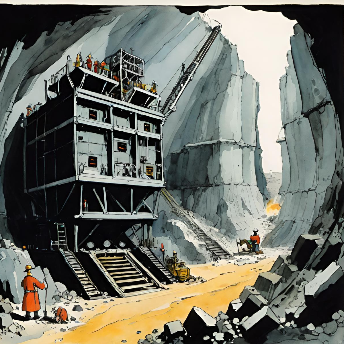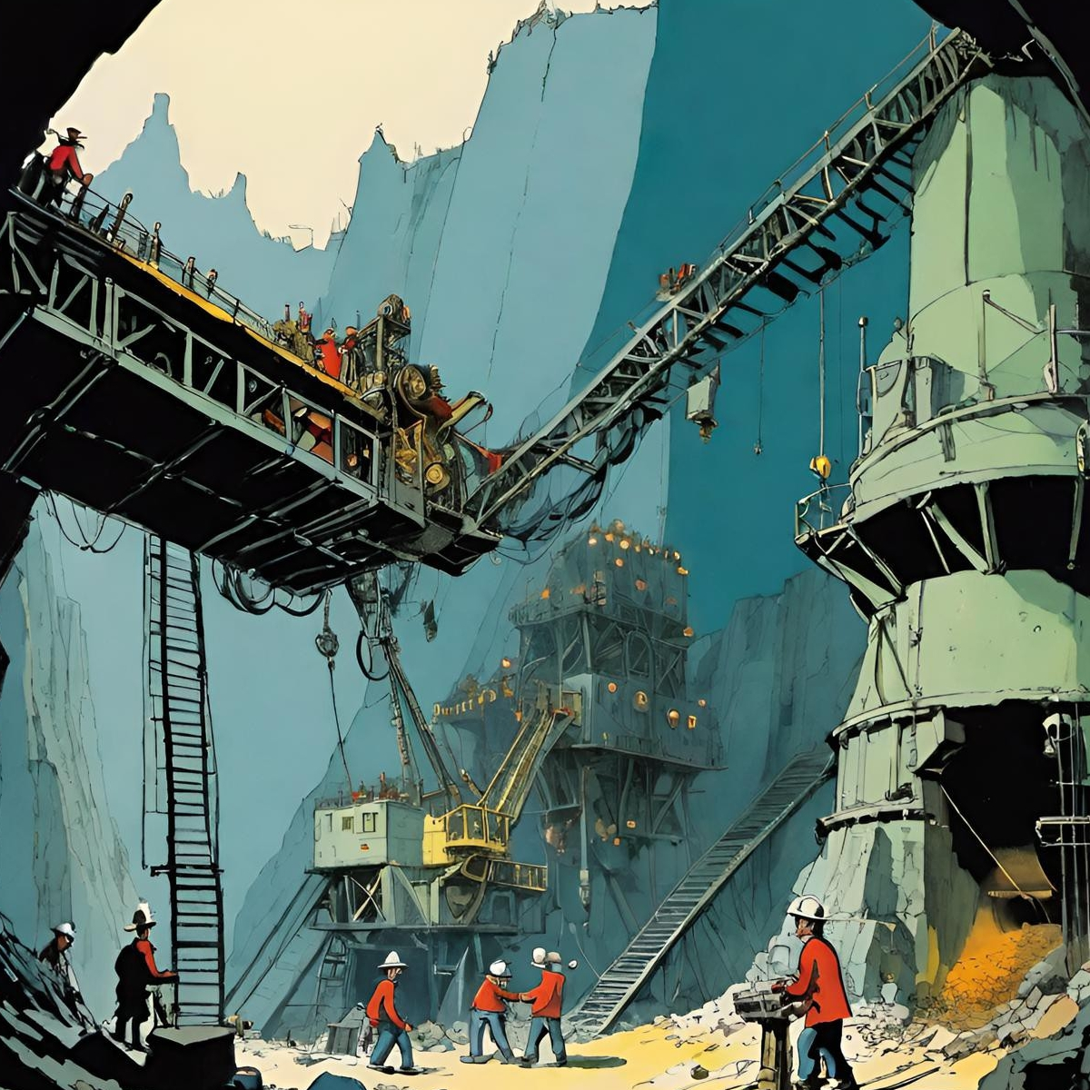 Einer der Kumpels hieb den Pickel in das rote Gestein. Ein Felsbrocken mit einer schimmernden Substanz löste sich aus der Wand und er warf ihn zu den anderen auf dem großen Haufen.