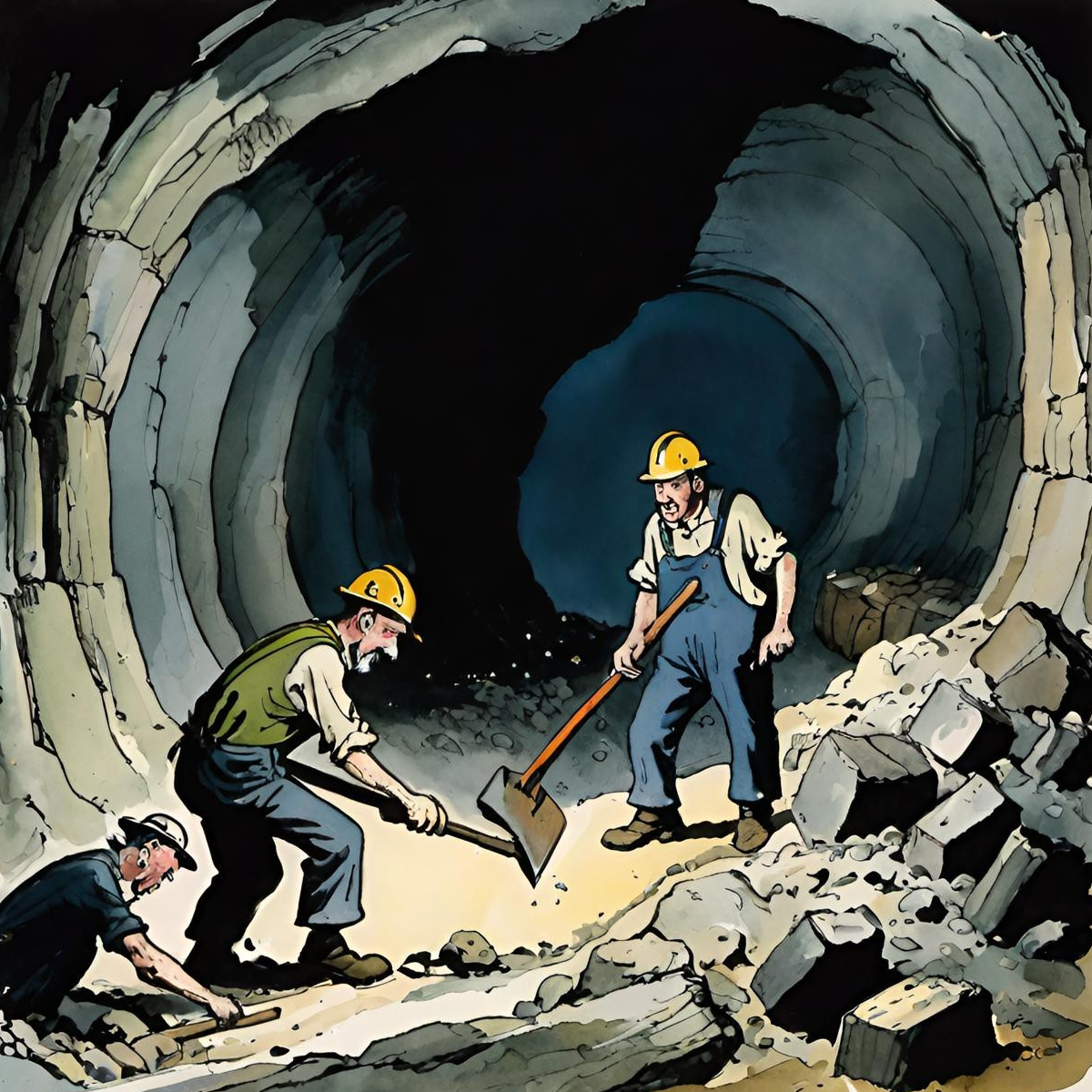 Ein großer Stein löste sich von der Decke des Stollens und verfehlte ihn nur knapp.