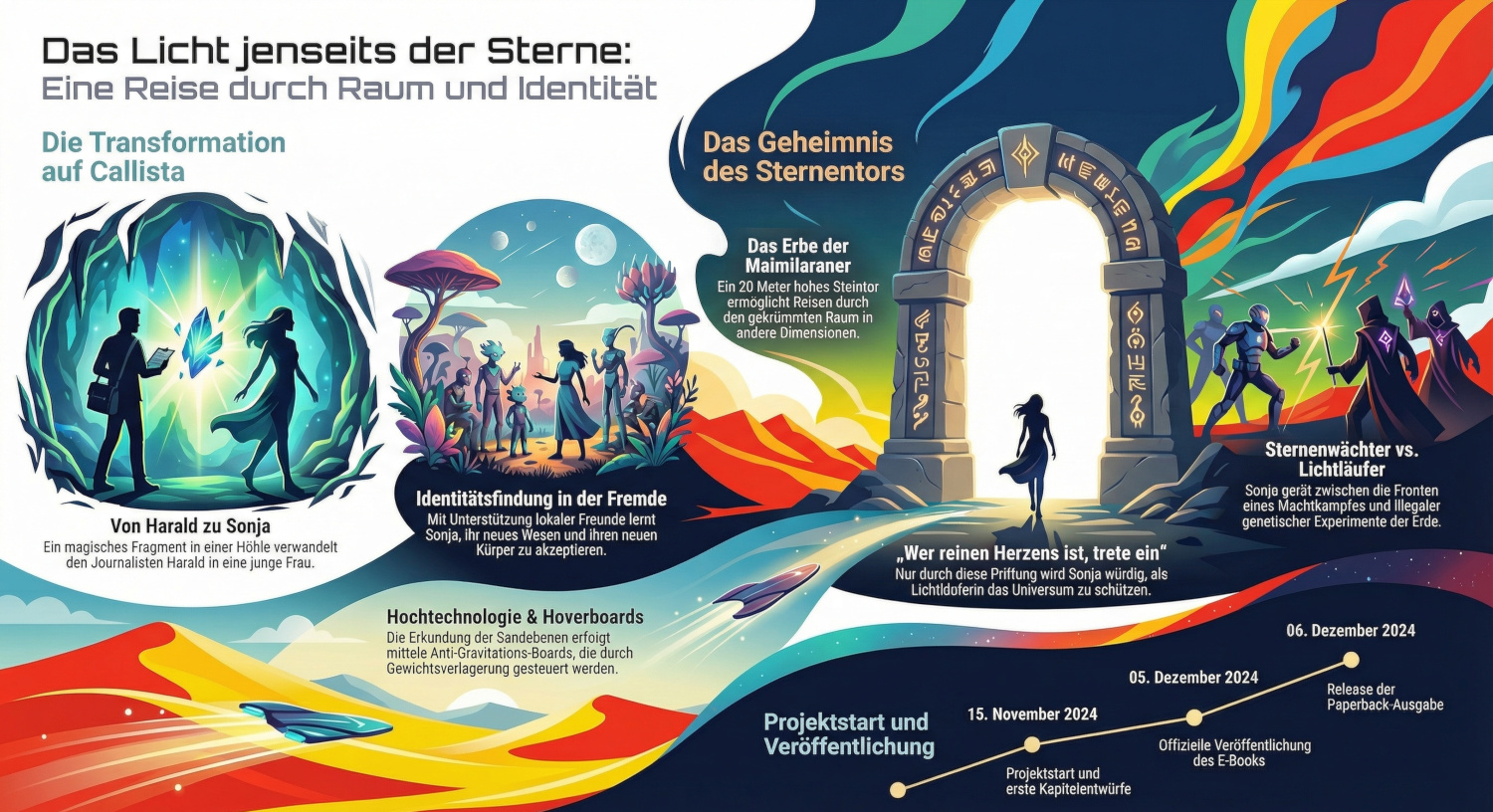 […] Das Licht jenseits der Sterne Eigentlich hatte sich der Journalist Harald Gutenberg seine Reise zum Planeten Callista vollkommen anders vorgestellt. Als er eine einer verborgenen Höhle ein magisches Fragment unbekannten Ursprungs entdeckt, wird er auf mysteriöse Weise verändert und nimmt nach und nach die Gestalt und das Wesen einer jungen Frau an. Fortan nennt sie sich Sonja und muss sich erst einmal an diese Veränderung gewöhnen. […]