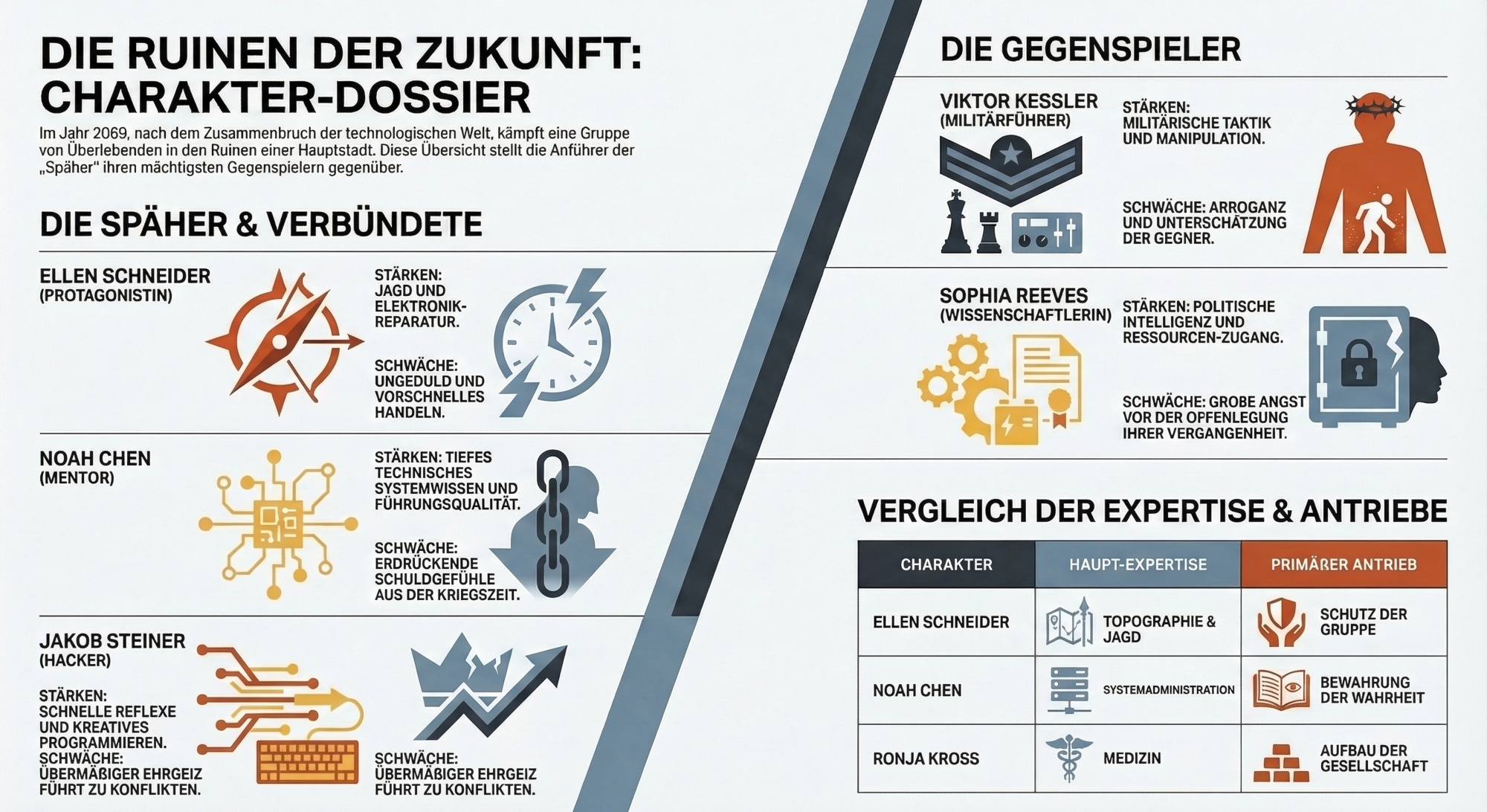 Fünf Jahre nach dem Ende der Welt kennt Ellen Schneider nur eines: Überleben. Als Späher durchstreift sie die Trümmer der einstigen Hauptstadt, auf der Jagd nach Ressourcen – und immer am Rand des Todes.