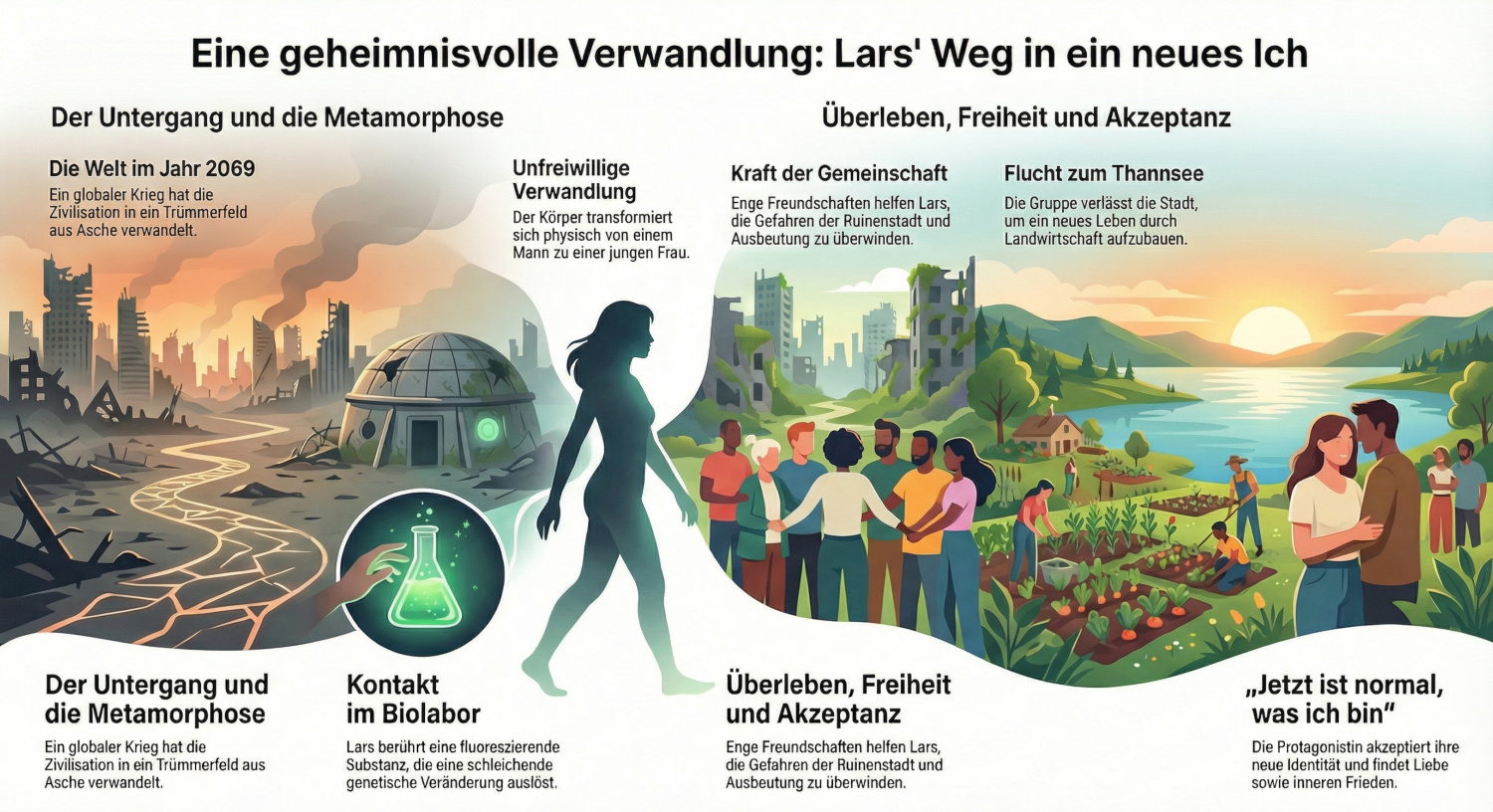 Lars‘ Reise ist ein Kampf zwischen Hoffnung und Verzweiflung, zwischen Menschlichkeit und der Bedrohung einer neuen, unbekannten Identität. Er muss nicht nur die Wahrheit über sich selbst herausfinden, sondern auch die Konsequenzen seiner Entscheidungen für sich und seine neu gewonnene Familie tragen. In einer Welt, die aus den Fugen geraten ist, könnte er entweder der Schlüssel zur Rettung oder die Ursache für das endgültige Chaos sein.