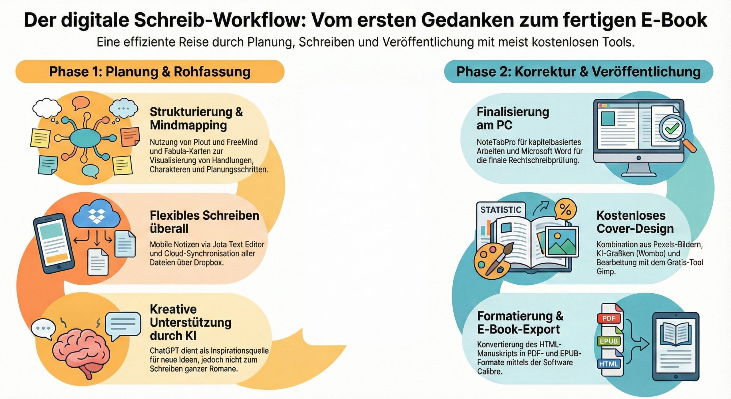 Ihr seht also, man braucht keine teuren Programme, um zu schreiben. Das Zusammenspiel der verschiedenen Programme hat seine Vorteile, und fast alle sind kostenlos und arbeiten zuverlässig.