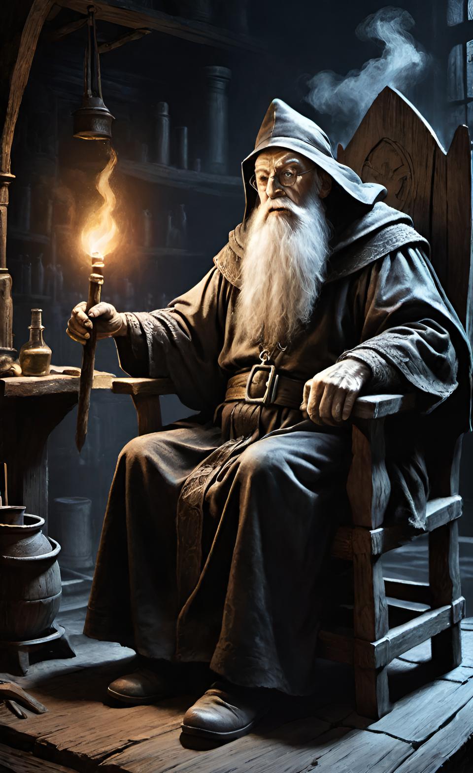 Seine Stimme klang wie das Knistern brennender Pergamentseiten – brüchig und doch voller Energie. Seine Augen waren das Bemerkenswerteste an ihm: blassgrau, beinahe silbern, als könnte er tief in meine Gedanken blicken.
